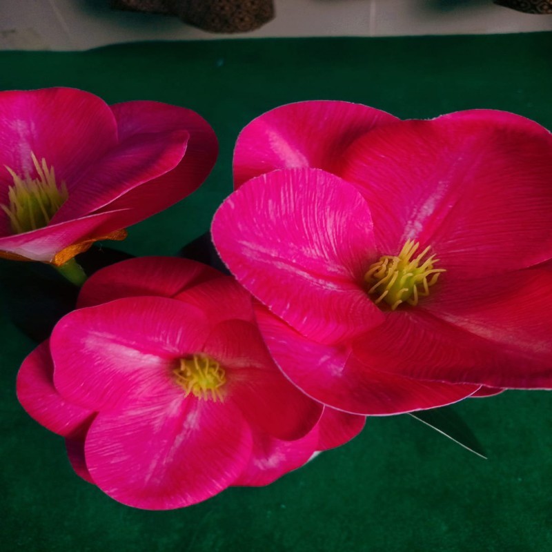 বাস্তবসম্মত লুক: উজ্জ্বল গোলাপি রঙের ফুল এবং সবুজ পাতার নিখুঁত ফিনিশিং এমনভাবে করা হয়েছে যা দেখতে একদম জীবন্ত ফুলের মতোই লাগে।